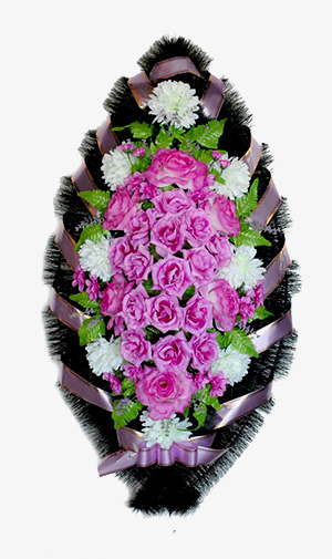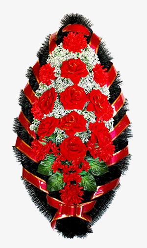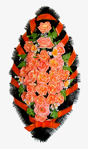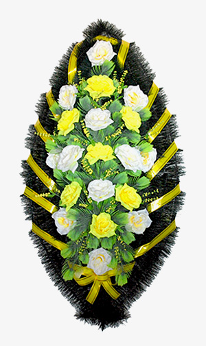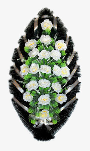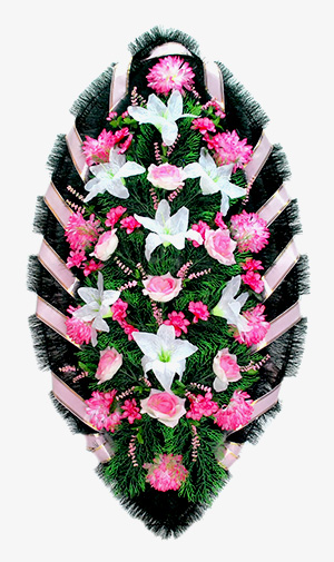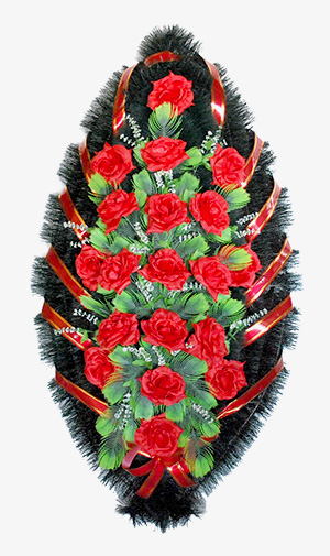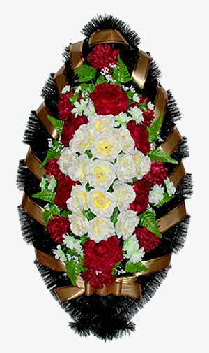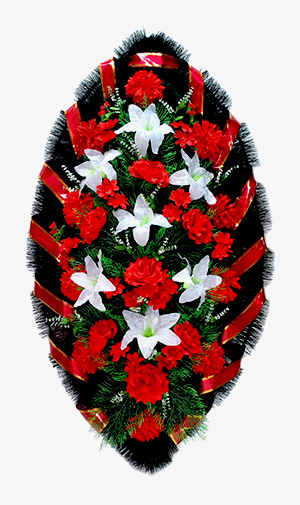 В разделе представлены венки из искусственных цветов классической овальной формы высотой 110 см. Фон выполнен на каркасе из стальной проволоки, цвета основы – темно-зеленый и черный. В ассортименте представлены венки различных цветовых гамм. Стоимость – от 3 800 руб.