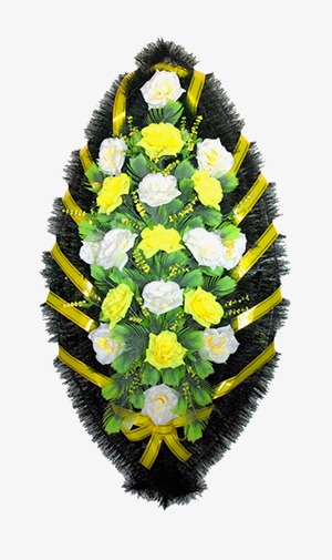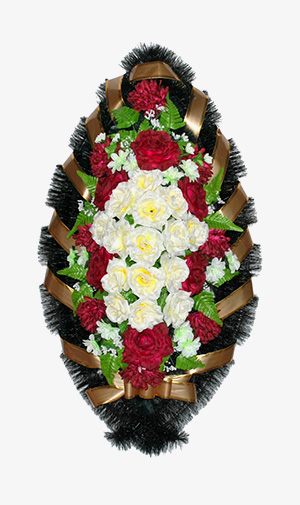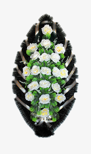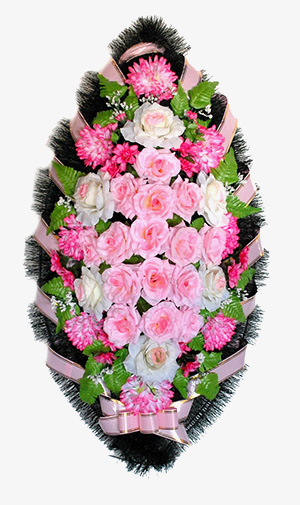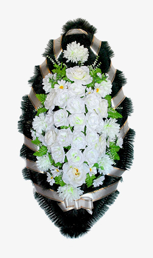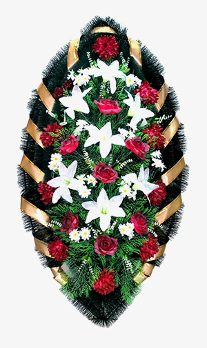В разделе представлены классические венки из искусственных цветов овальной формы высотой 140 см. Фон выполнен на каркасе из стальной проволоки, цвета – темно-зеленый и черный. В ассортименте представлены венки различных цветовых гамм. Стоимость – от 4 600 руб.