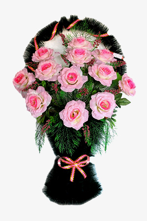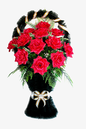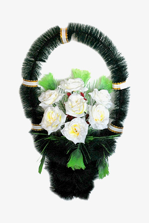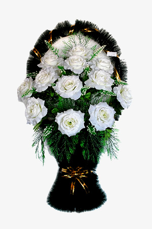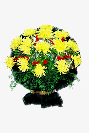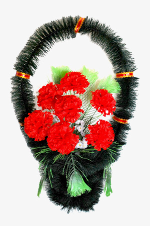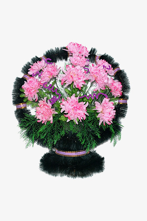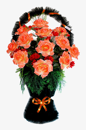 Корзина из искусственных цветов – классический вариант траурной композиции, служащей украшением могилы и выражающая скорбь близких людей умершего человека. В разделе представлено несколько вариантов корзин, созданных дизайнерами в соответствии с устоявшимися ритуальными традициями.